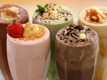 Giant serve - Topping of your choice are Banana, Chocolate,vanilla, Ice coffee, Spearmint, strawberry and Caramel toppings & with ice-cream and malt.